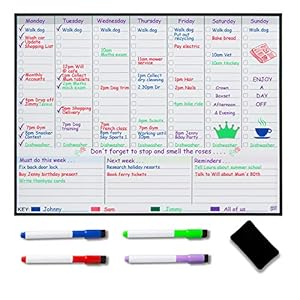 Magnetic Weekly Planner Fridge Whiteboard – Weekly Meal Planner – Family Planner – Get organised to Reduce Stress in…