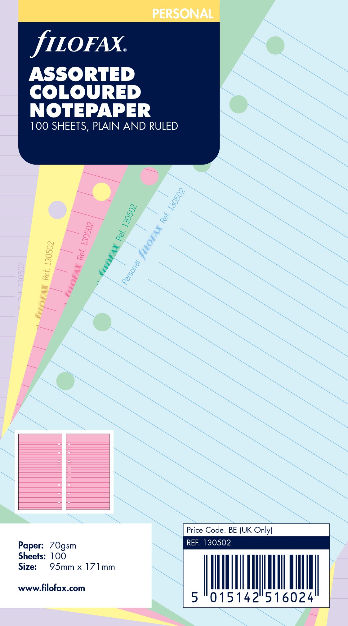 Filofax Personal Assorted Coloured Notepaper Plain and Ruled Value Pack