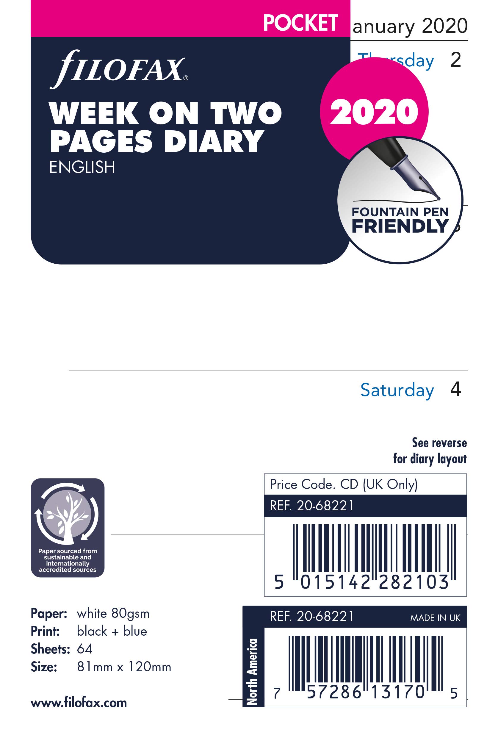 To be used in Filofax Pocket Organisers, this diary refill for 2020 is 6 hole punched with Every week unfold across two pages for noting down conferences, appointments and normal notes. Every page additionally includes a per 30 days calendar for simple referencing.