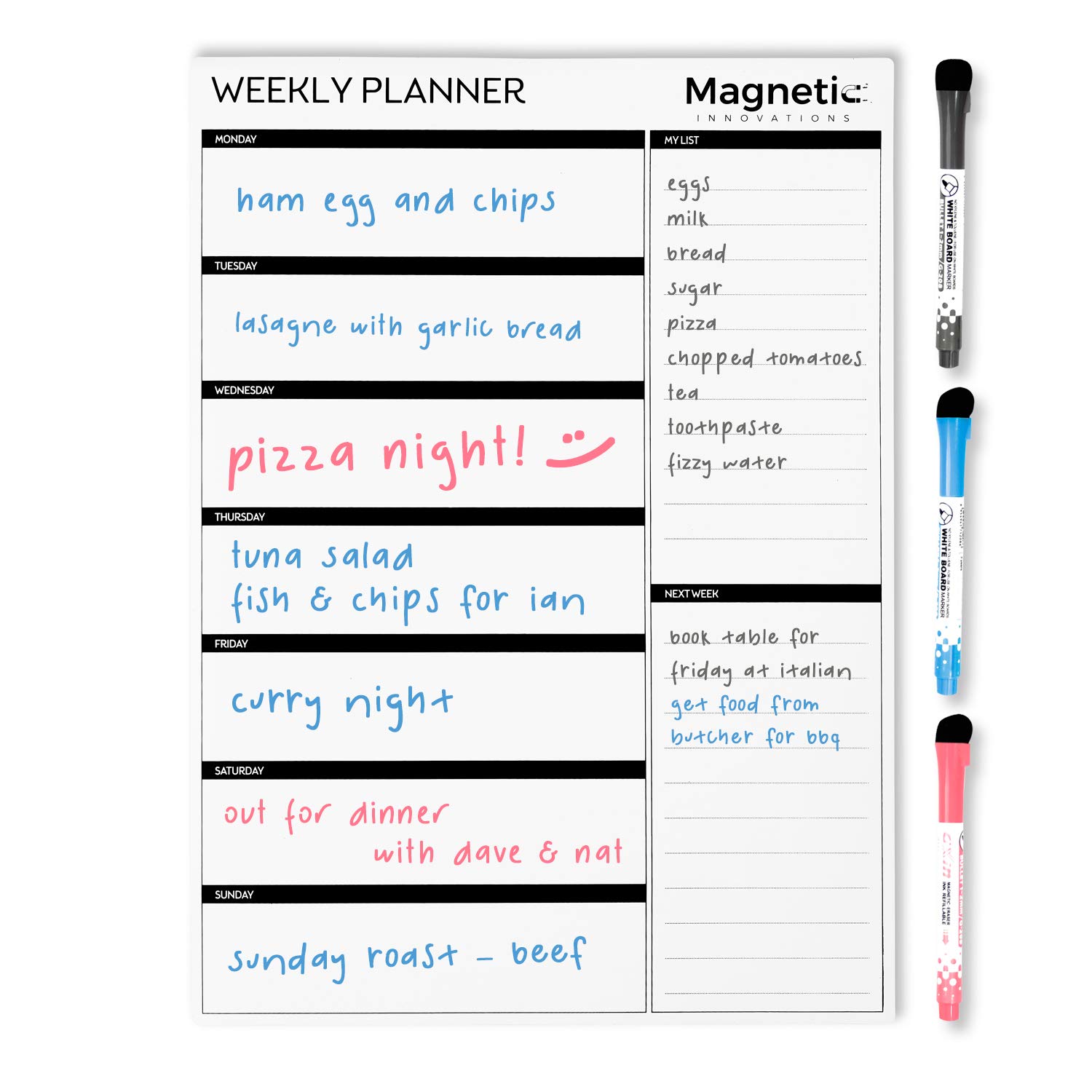 PREMIUM NON STAIN FINISH & MONEY BACK GUARANTEE – Our magnetic weekly planner is made with PET stain free technology so wipes clean effortlessly, it comes packed flat in a box so will arrive flat and uncreased. It is professionally designed and made from prime quality materials so will look at home in your kitchen. It also comes with our 100% Moneyback Guarantee. If you don’t seem to be satisfied for any reason, we can replace it or You’ll simply return the calendar for a full refund.